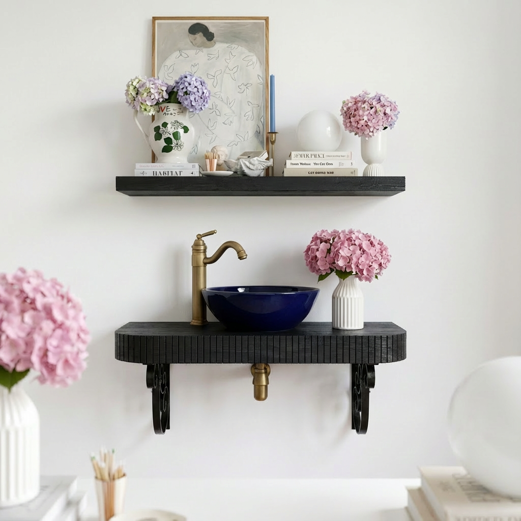 This Modern Wooden Wall Mounted Bathroom Vanity Shelf With Metal Brackets For Bathroom works well in: